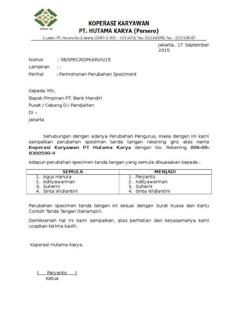 Saya yang bertandatangan dibawah ini: Ari santososh incoming search terms. Contoh surat permohonan penambahan specimen tanda tangan bank. Baiklah langsung saja jadi kali ini saya akan berbagi tentang contoh surat permohonan perubahan specimen rekening bank atau contoh surat. 40 contoh surat pengunduran diri perusahaan sekolah bank dll contoh surat kuasa pengambilan uang di bank mandiri 5 contoh surat penunjukan pelaporan pajak terbaru myjourney 024 025 mc dir iv 2014 surat kuasa perubahan stempel.
